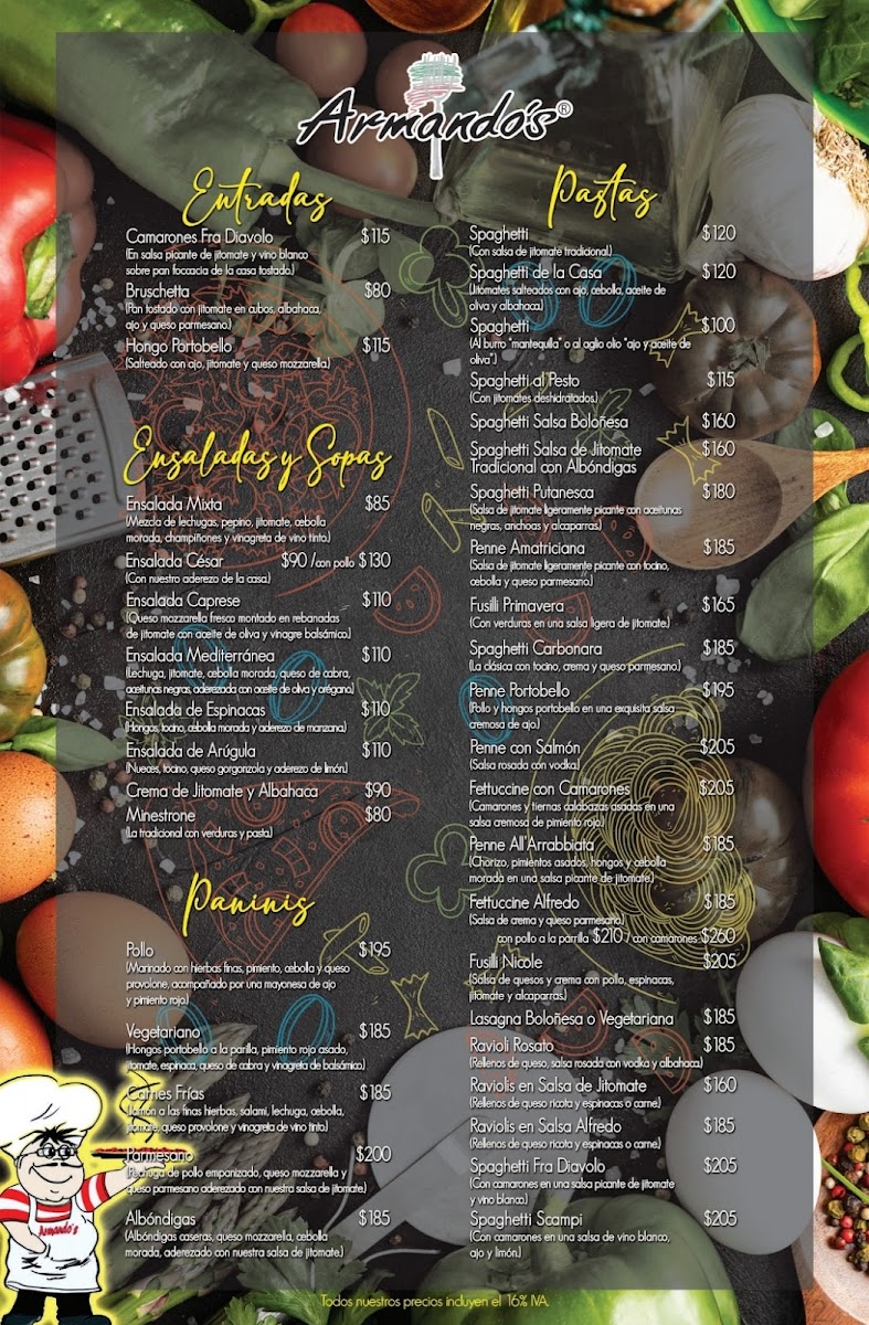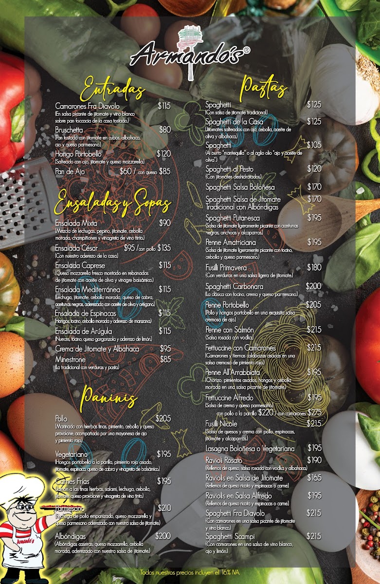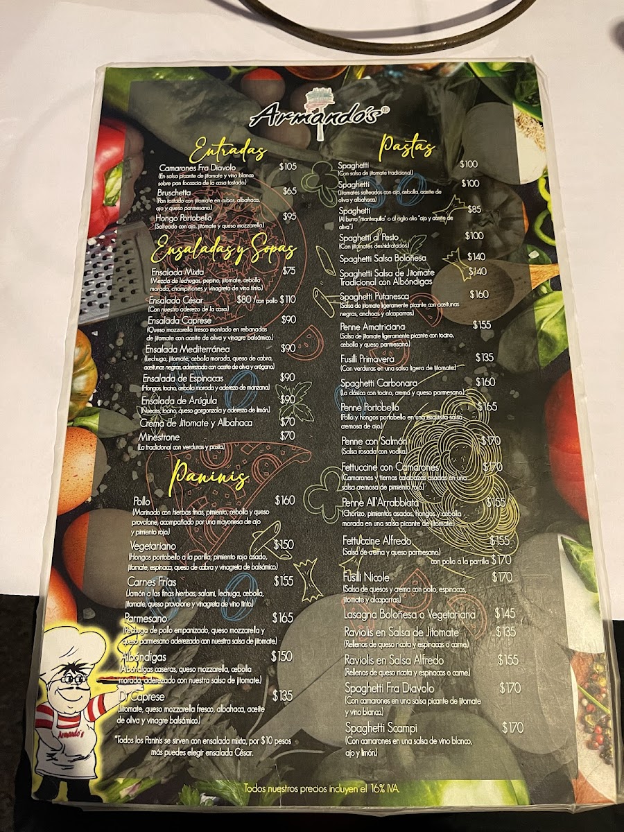 Armando's pizzeria & restaurante Menu
